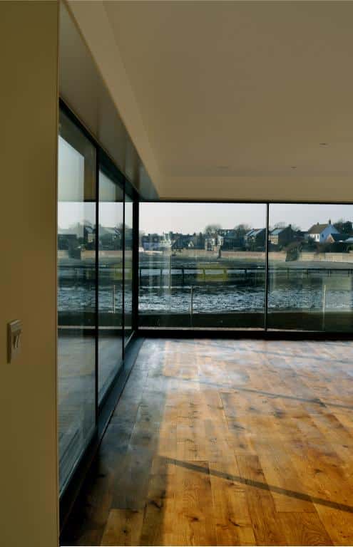 Martin says: “The team was in its element, bringing to life the innovative, inspiring designs the client had dreamed of. The open glazed corner with no supporting post, seen in the photograph, is fully exposed to the southwest prevailing winds when the doors are open. The views of the harbour are breathtaking.”