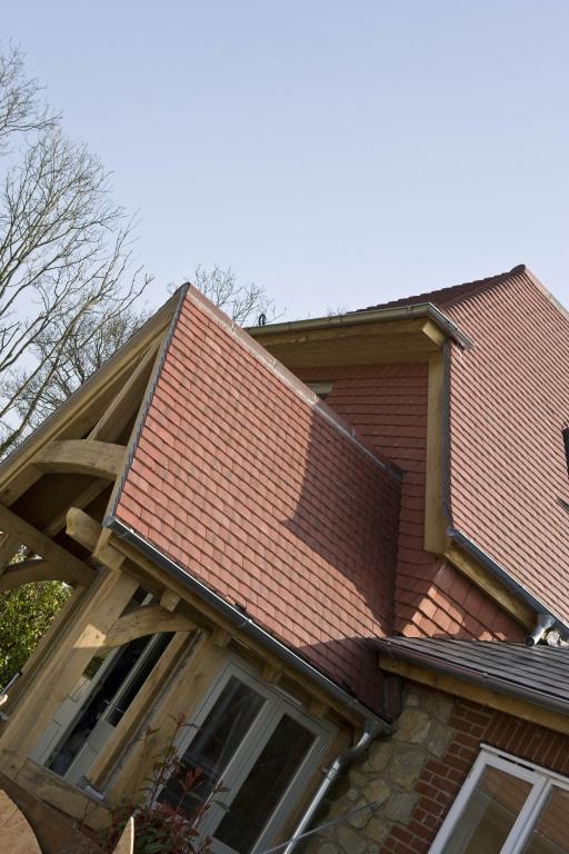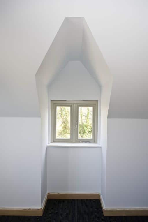 Now completed, the building’s transformation is stunning. The first impression is the unashamedly bright and vivacious tiles; the bright roof is set off with beautiful oak fascias and aluminium guttering and inside, bespoke joinery items include oak doors, a lit oak staircase and a truly gorgeous solid hardwood kitchen.
