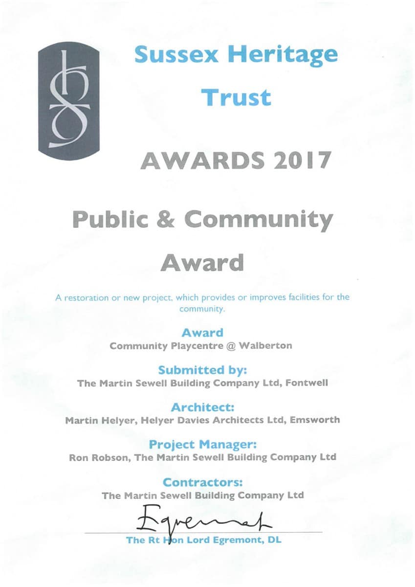 The Playcentre provides a DDA and Ofsted compliant community space that is child-centred in design and the project won the Sussex Heritage Trust Award alongside the O2 tower in Brighton. The judges’ comment about the project was as follows:
