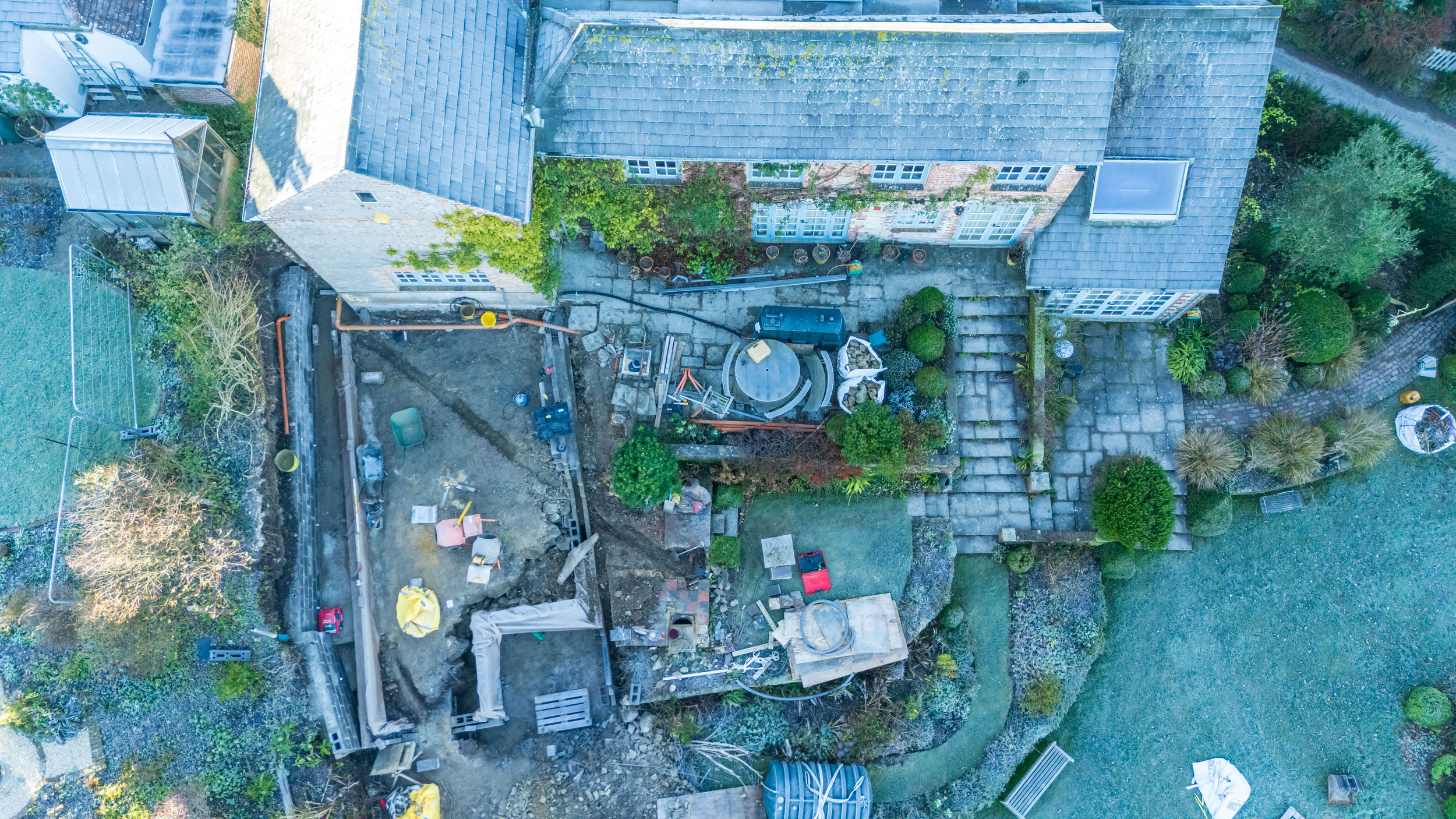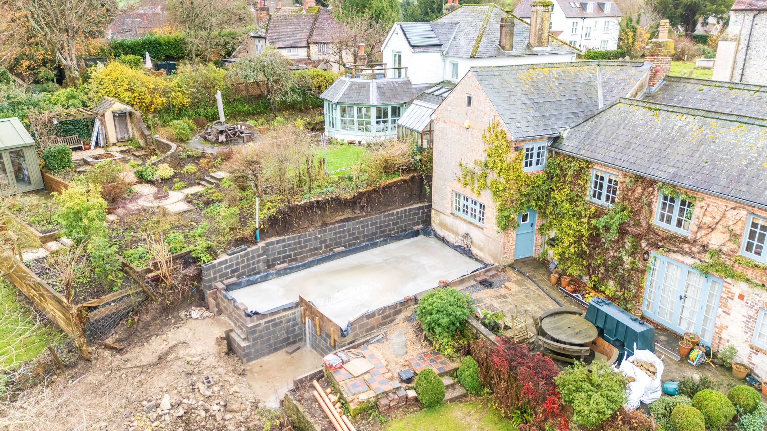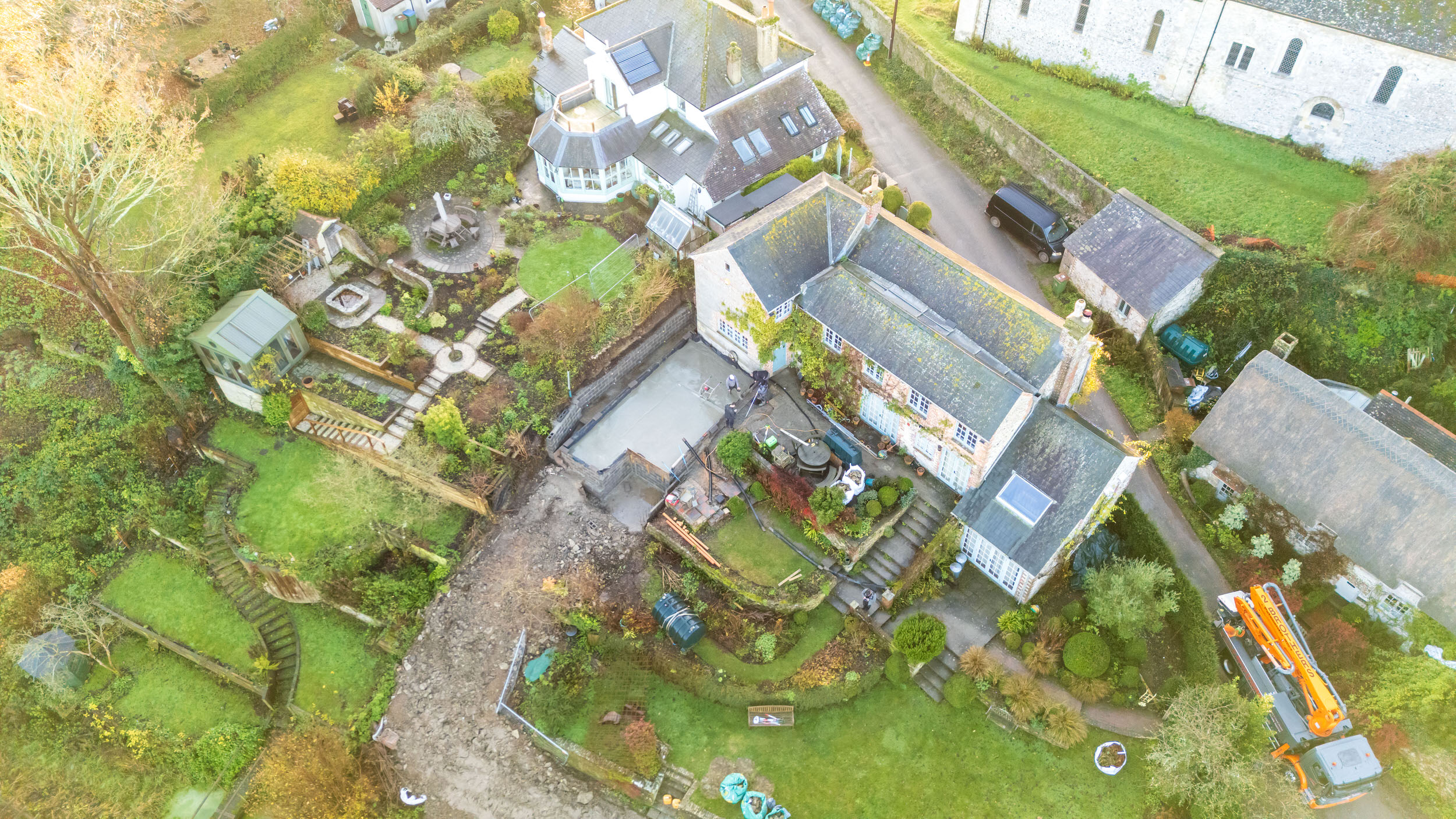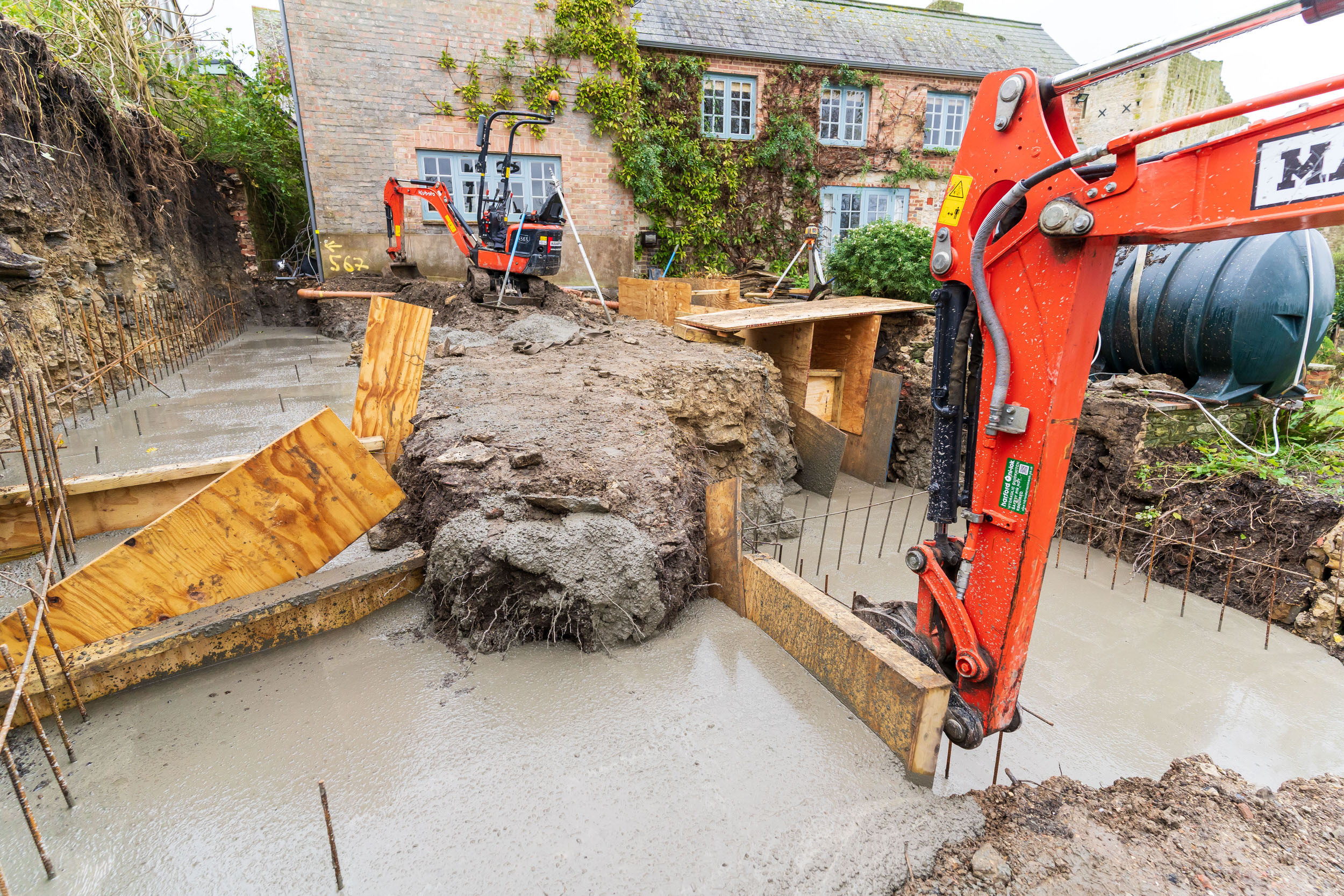 The enabling works are nearing completion, including the demolition of a dilapidated outbuilding and clearing of the site footprint. This preparatory phase has been essential in establishing the foundation for the substantial extension work to follow.