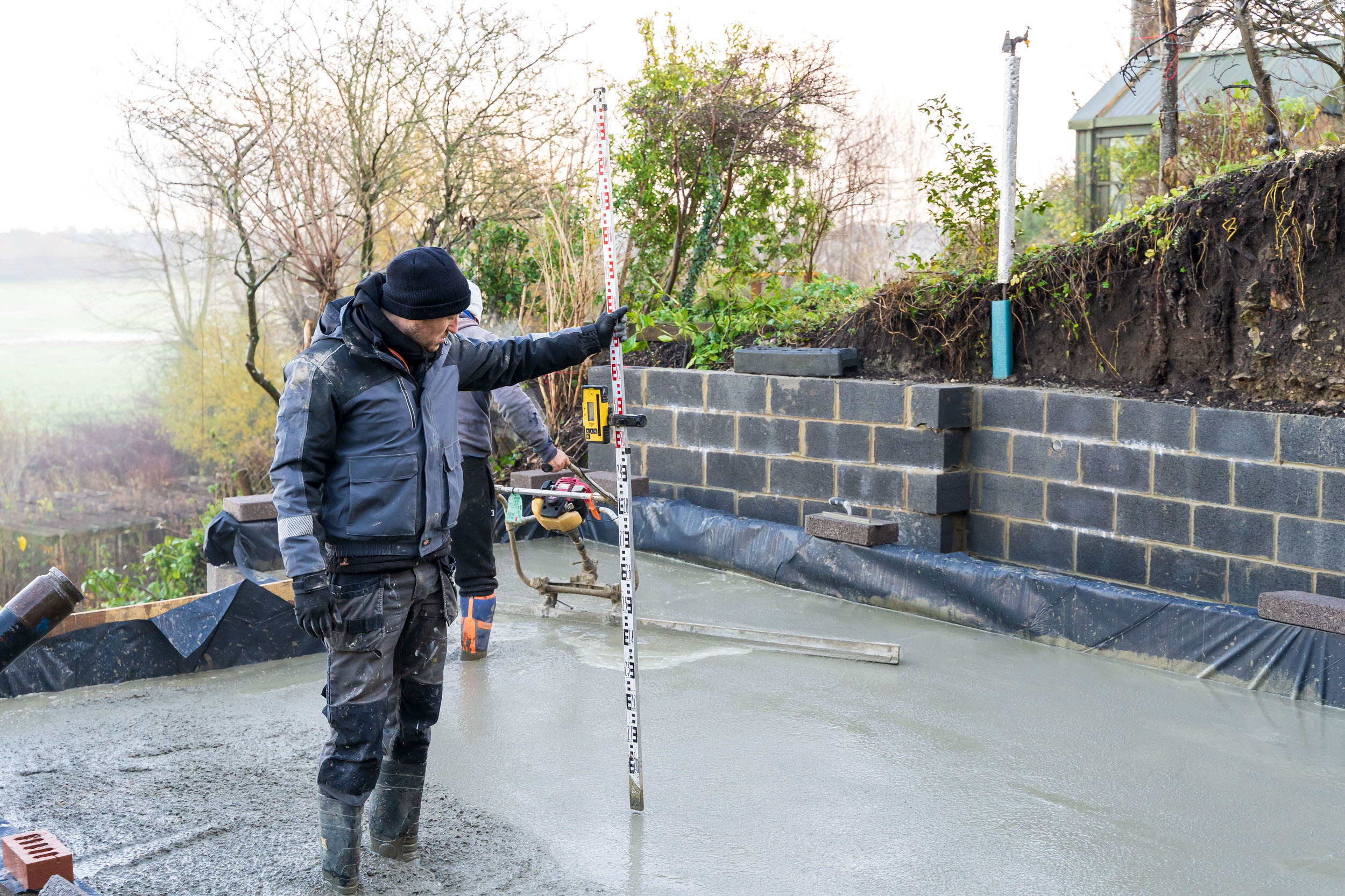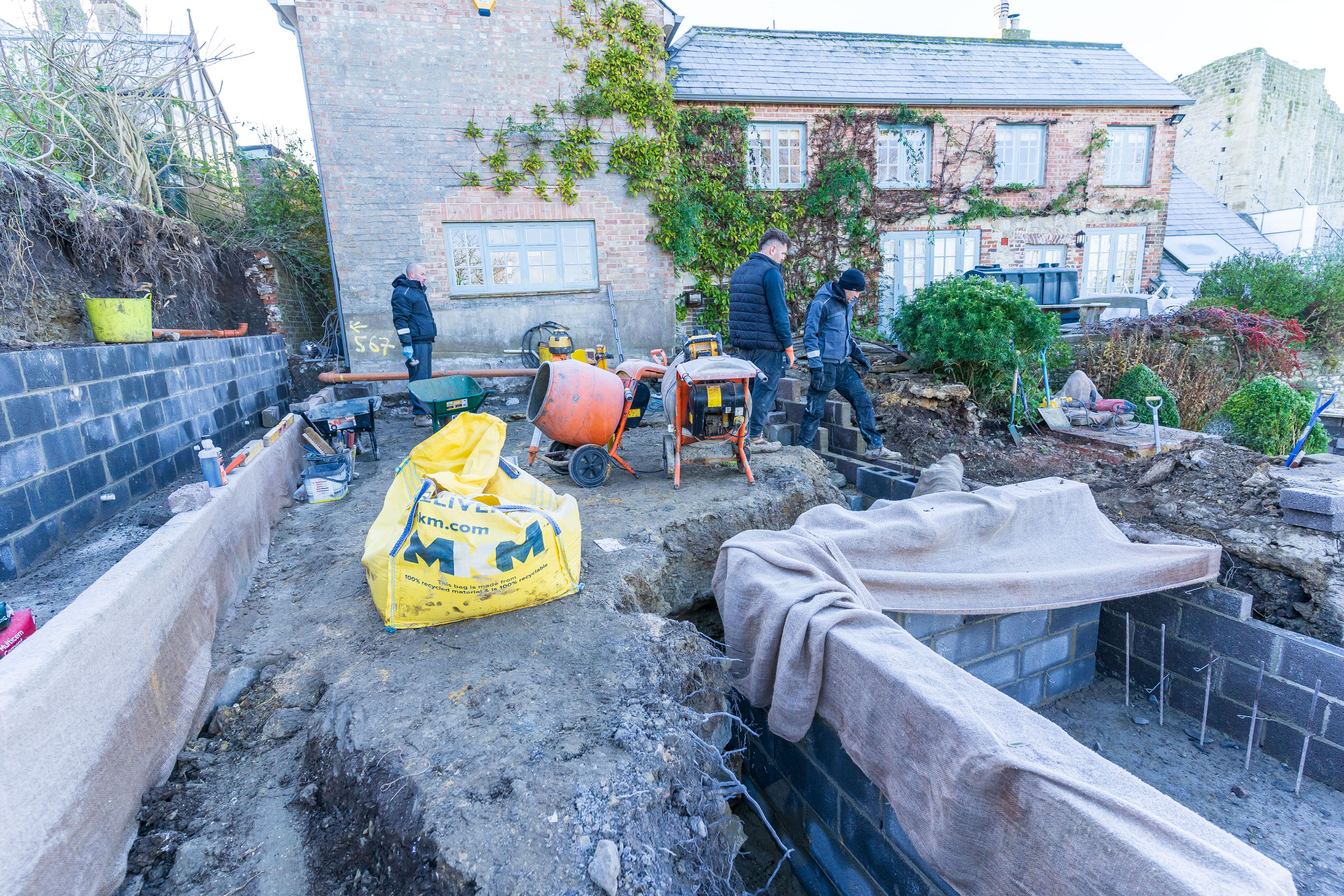 A careful assessment of existing boundary walls has been undertaken to ensure seamless integration with the new design. This investigation work demonstrates the thorough approach needed when working with existing structures and established boundaries.