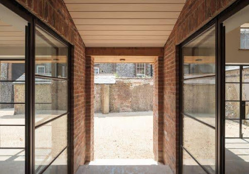 An exciting part of the past year has been the Highly Commended Award we received from the Sussex Heritage Trust. This will be the 4th year in a row we have received one of these prestigious awards. The project involved re-building a derelict Georgian stable yard within the curtilage of a Grade II listed townhouse. New studio spaces were built at the foot of a 260-year-old flint and lime mortar retaining wall. Finished with brick, flint and slate, the new building is true to the look and lines of the original stables and generates solar energy for the studio, the main house, and the owner’s vehicles.